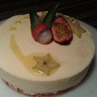 Une mousse mangue sur un succès coco, pour l’anniversaire de Marie-Jeanne.