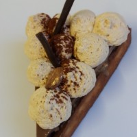 Le weekend dernier, une tartelette triangulaire pour changer un peu. Un fond de pâte sucrée, un peu de crème d’amande pour que ça tienne, du croustillant spéculoos pour l’originalité, un crémeux chocolat-café et une chantilly au café. What else!